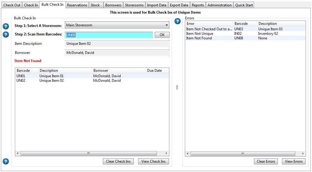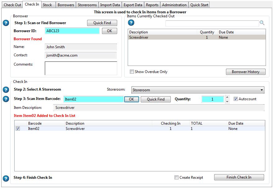 Our software guides you through the process of setting up Borrowers, Storerooms and Items.
